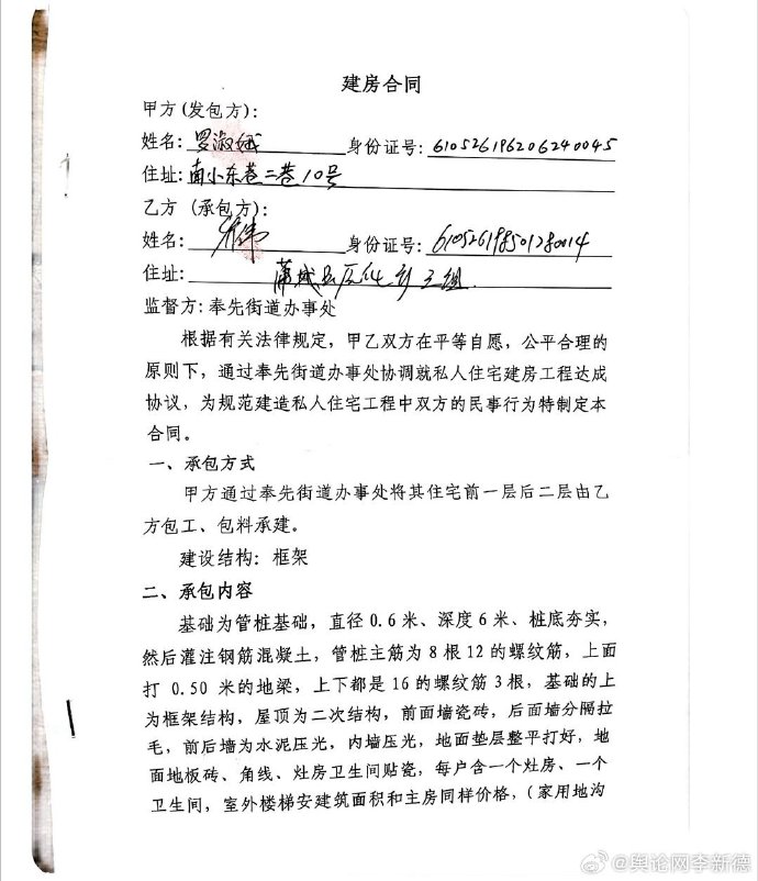 然而,合同履行情况令人失望。“自一开始建房就设法停工,途中多次停工,现在仍然在停工。”罗淑娥表示,她希望国家督促蒲城政府遵守建房合同,让年过九旬的她能够早日住进安全的房子。