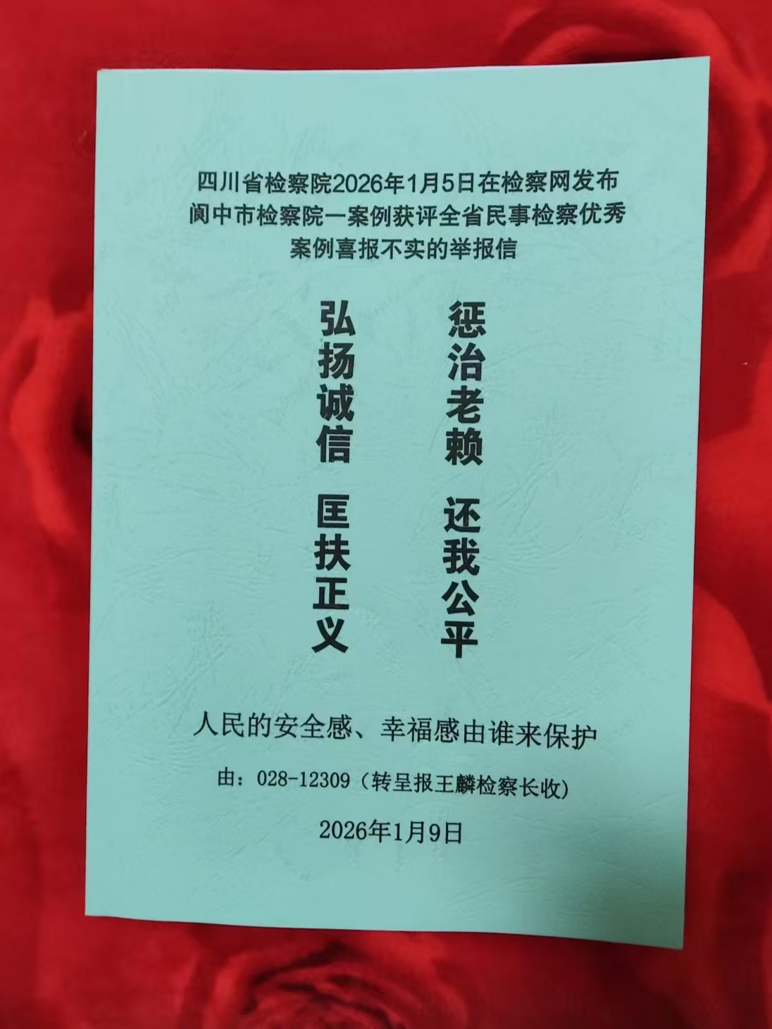 我们强烈呼吁四川省人民检察院立即启动专项调查,撤销该案“优秀案例”的表彰决定,彻查160万执行款的具体去向,纠正取保候审程序中的违法违规行为,督促阆中法院尽快启动金榜大酒店6-8号楼的拍卖流程;同时,依法追究相关责任人的法律责任与纪律责任,让违法失责者付出应有代价,让受害当事人得到应有赔偿,让司法监督回归本位,重塑司法公信力。