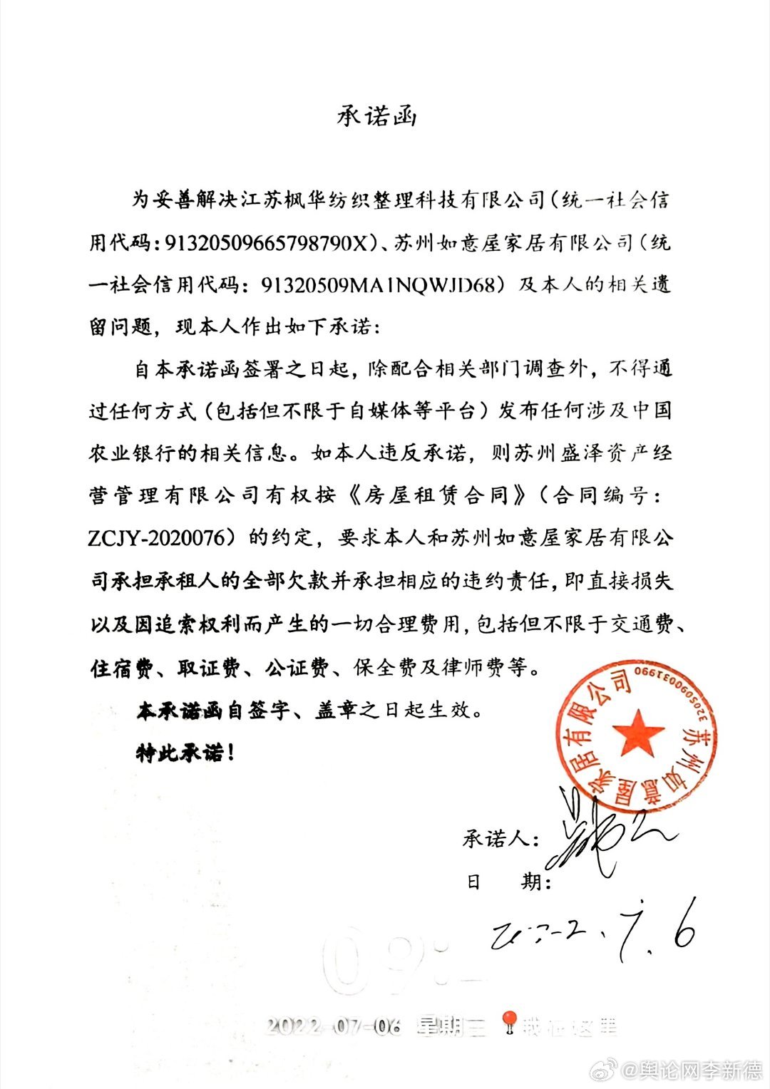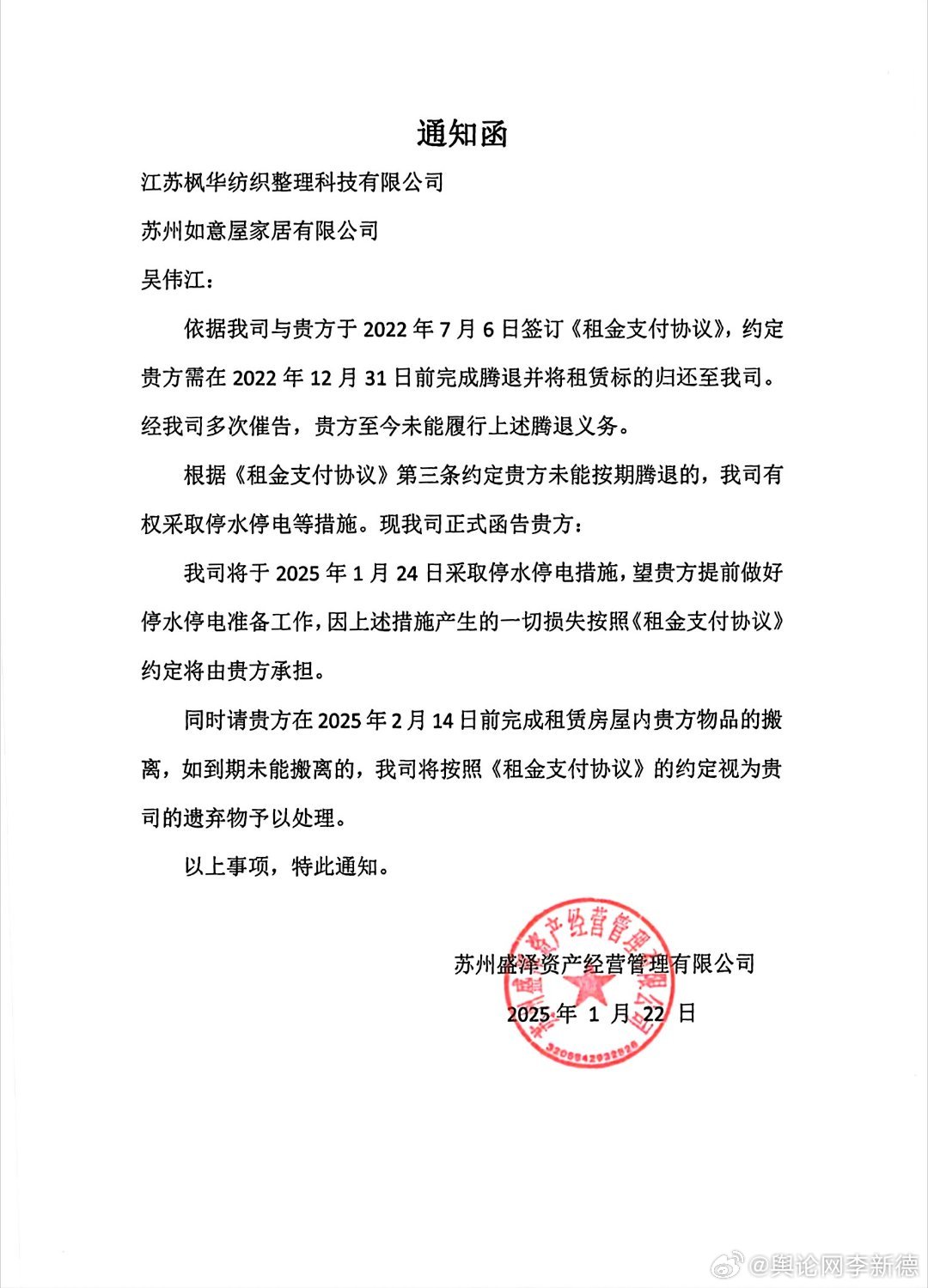 更令人发指的是,企业破产后,吴伟江试图通过租赁原厂区厂房恢复生产、维系员工就业,却持续遭受打压。当地政府控股的苏州盛泽资产经营管理有限公司,在拍卖获得伟江公司资产后,拒不搬离车间内设备,导致新公司无法投产,甚至以停水停电、收回排污指标相威胁,逼迫吴伟江签订《不再举报承诺函》。“谁让你举报的,你必须搬离”,盛泽资产公司一位副总的这番话,道出了打压行为的核心原因。