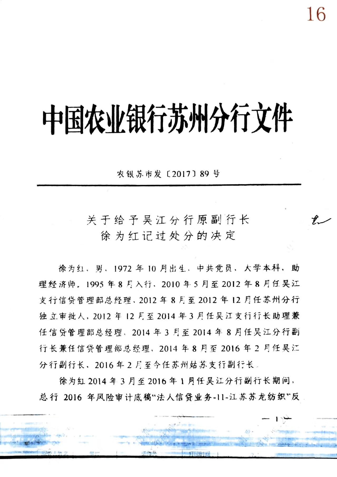 一份轻飘飘的记过处分,怎能抵消近千亿元信贷损失的沉重后果?怎能弥补一家行业500强企业破产的灭顶之灾?中国农业银行苏州分行对吴江分行原副行长徐为红的处分决定,看似回应了违规放贷问题,实则是用内部纪律处分规避法律责任的“障眼法”。对于因农行违法操作而蒙冤破产的伟江公司及法人吴伟江,农行不能仅靠“记过”敷衍塞责,必须依法承担赔偿责任,还受害者一个公道。