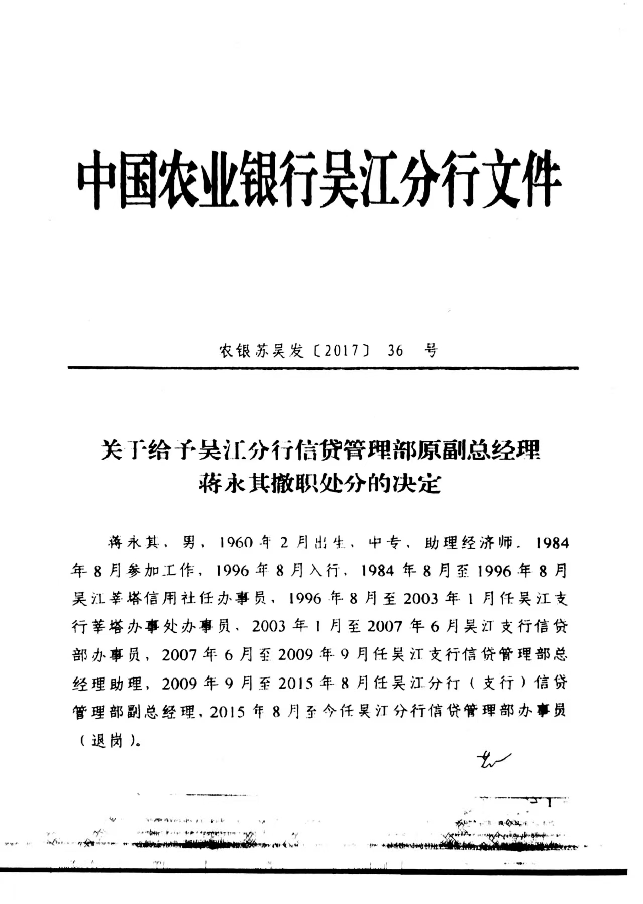 2017年农业银行内部处分文件(农银苏发〔2017〕86号等),撕开了一起触目惊心的金融腐败黑幕——苏州分行向巨诚系巨诚科技集团违规放贷高达9.95亿元,最终沦为巨额坏账。这起案件的核心症结,在于一条从操作层到管理层的全链条失守:支行行长杨俊峥、林志成对企业虚假财报视而不见,因直接违规被记大过;分行行长陈刚、副行长徐为红履职不力,被予以记过处分。然而,更令人匪夷所思的是责任追究的“诡异断层”:在一线责任人被问责的同时,时任江苏省分行副行长兼苏州分行行长刘家旺,却于2018年逆势升任安徽分行行长,成为金融反腐中“问责止于操作层”的典型注脚。